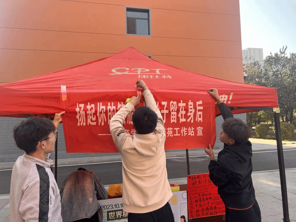 入党积极分子们以分小组的形式,分别进行文本编辑、展板设计、道具制作、搬运等工作。大家将自己最大的热情投入到劳动中,分工协作,默契配合,高效完成了学院活动的筹备工作。