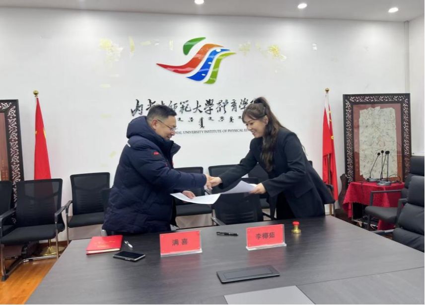 本次签约授牌仪式由体育学院副院长满喜主持,同时体育学院党委副书记、副院长敖永胜、内蒙古师范大学实践教学科科长董振华、内蒙古特荣体育发展有限责任公司法人李椰茹以及法律顾问朝鲁门、体育学院体育教育系主任孟克满都胡、运动训练系主任贾佳、社会体育指导与管理系主任齐晓丹共同出席了本次仪式。