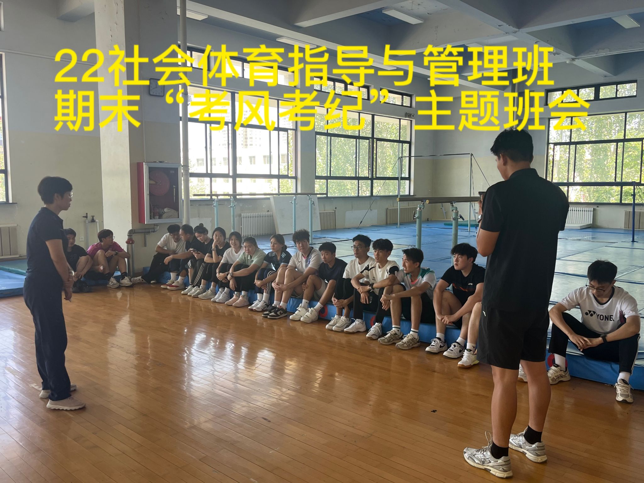 临近期末考试,为切实做好学生教育管理工作,营造公平公正的考试环境,保障学生假期安全,于2025年6月16—6月23日期间,体育学院组织各班召开期末主题班会,对考风考纪及假期安全教育进行重点强调。