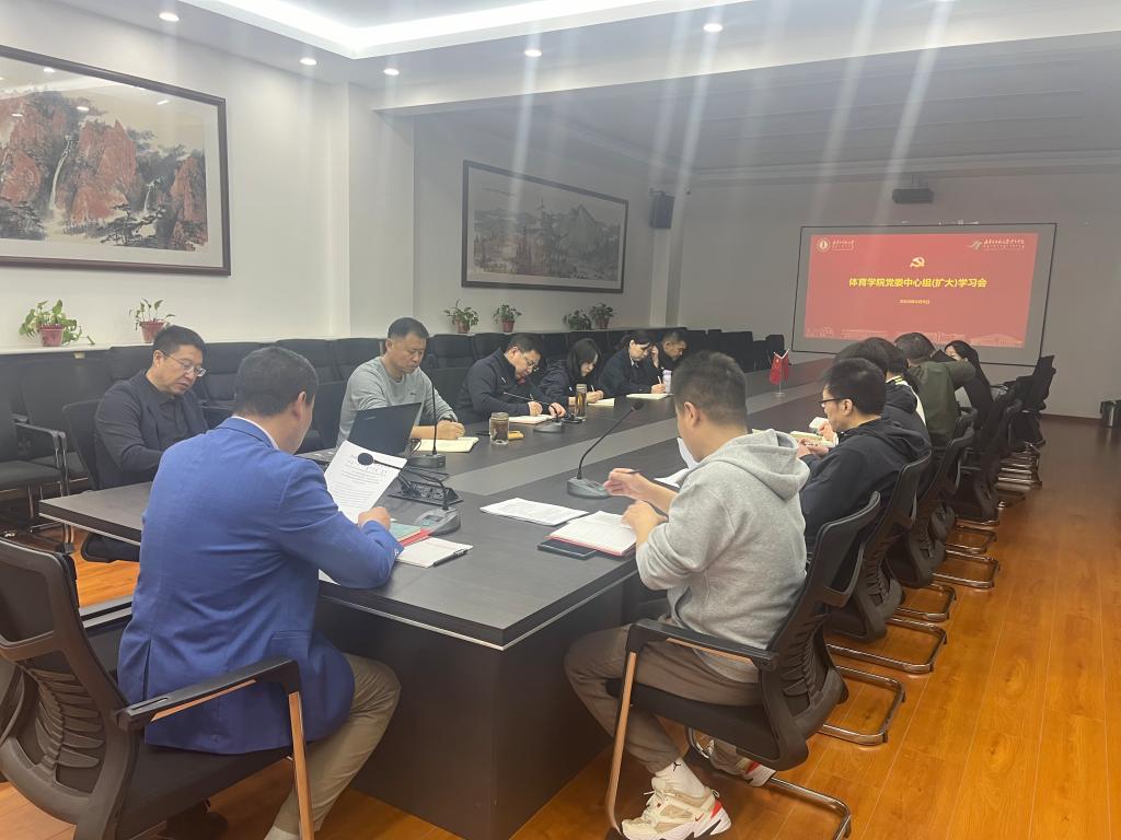 2024年4月9日,体育学院党委组织开展理论学习中心组(扩大)集体学习会。学院党委书记韩武主持会议,学院领导、环节干部参会学习。