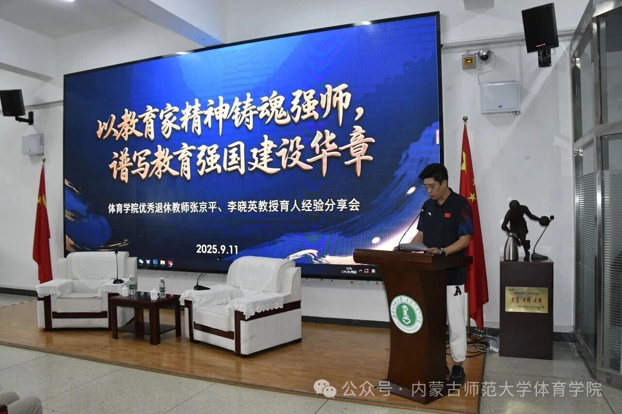 为弘扬教育家精神,强化师德师风建设,致敬教育工作者初心使命,在第41个教师节来临之际,体育学院于二楼多媒体教室隆重举行“以教育家精神铸魂强师,谱写教育强国建设华章”优秀退休教师育人经验分享会。学院领导、师生代表齐聚一堂,重温育人初心,传递师道力量。