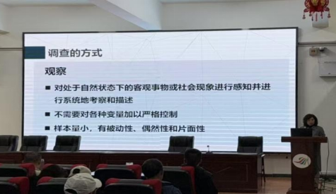 孟欣欣副教授在报告会上强调了调查在论文写作中的重要性,介绍了问卷、观察和访谈等调查方法,并分享了自己在中国体育非物质文化遗产研究中的实地考察经验。她还讨论了网络文化和饭圈现象的研究方法,以及口述史在研究中的挑战。