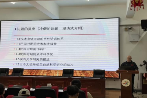 张振华副教授探讨了民国时期太极拳理论与科学的融合,指出尽管当时尝试科学化,但存在局限性。他强调现代武术教学应重视体验系统和身心交互,同时武术作为文化遗产在传承上面临新挑战。张教授的汇报为武术与科学的未来发展提供了深刻见解。
